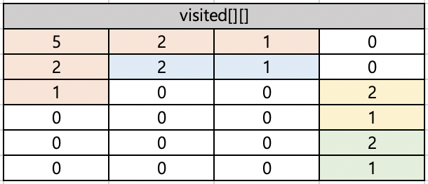 visited[x][y] = 1; // 처음 방문한 경우 1