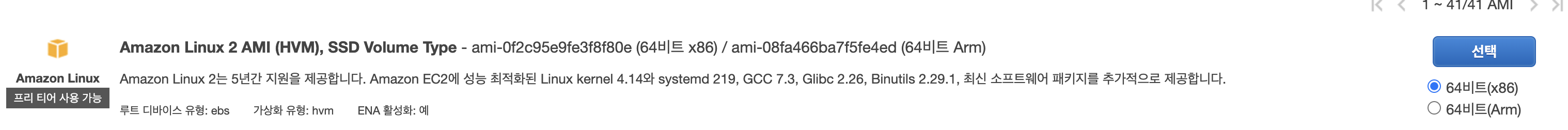 2. 프리티어 버전에서 쉽게 사용할 수 있는 Linux 이미지를 선택합니다.