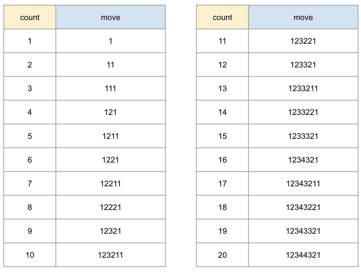 이 문제의 경우 직접 종이에 써가면서 규칙을 찾는 것이 중요합니다. 단순하게 규칙을 찾아서 적용한 풀이를 설명할 것이며 어떠한 식을 구해서 푸는 방법도 있으니 참고하시기 바랍니다.