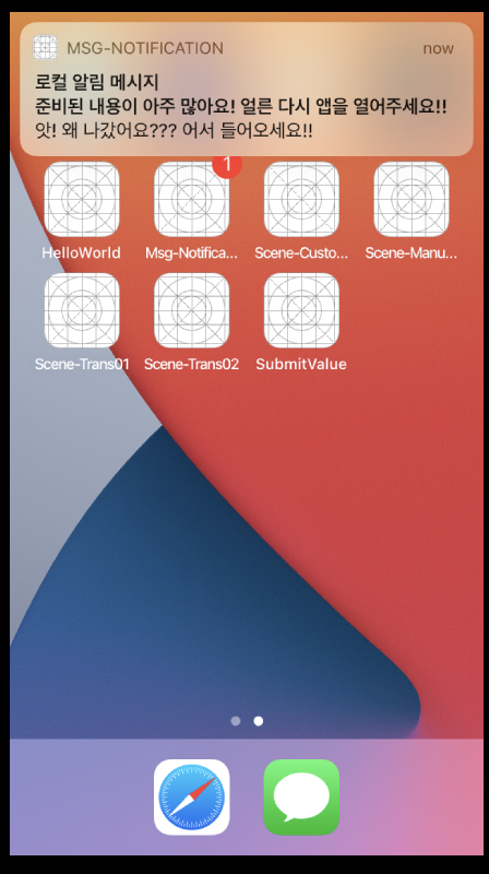 앱을 실행한 후 홈 화면으로 빠져나가면 5초 뒤 아래와 같이 알림이 오는 것을 확인할 수 있습니다.