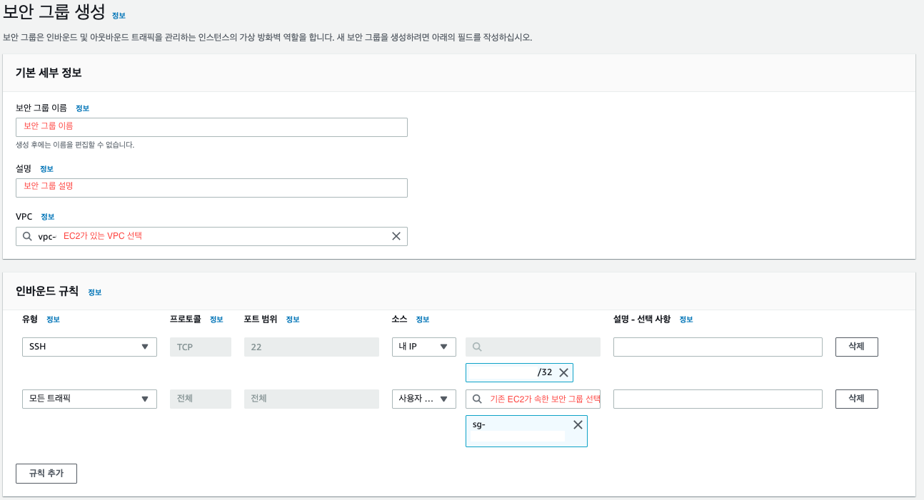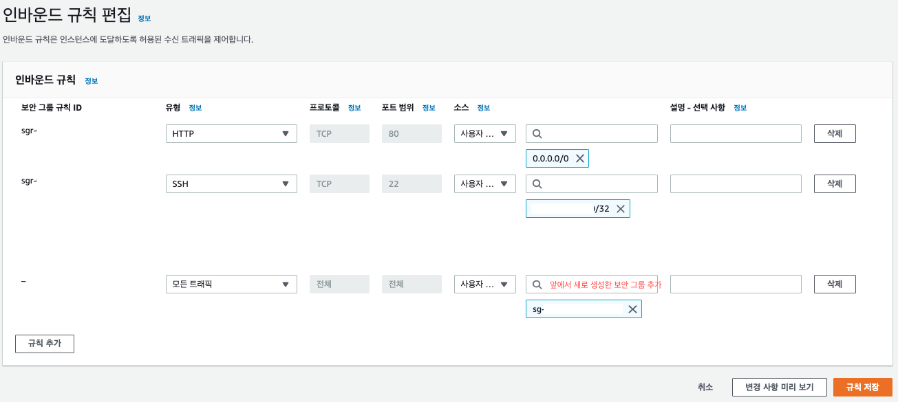 3. 기존 EC2의 보안 그룹의 인바운드 규칙 수정