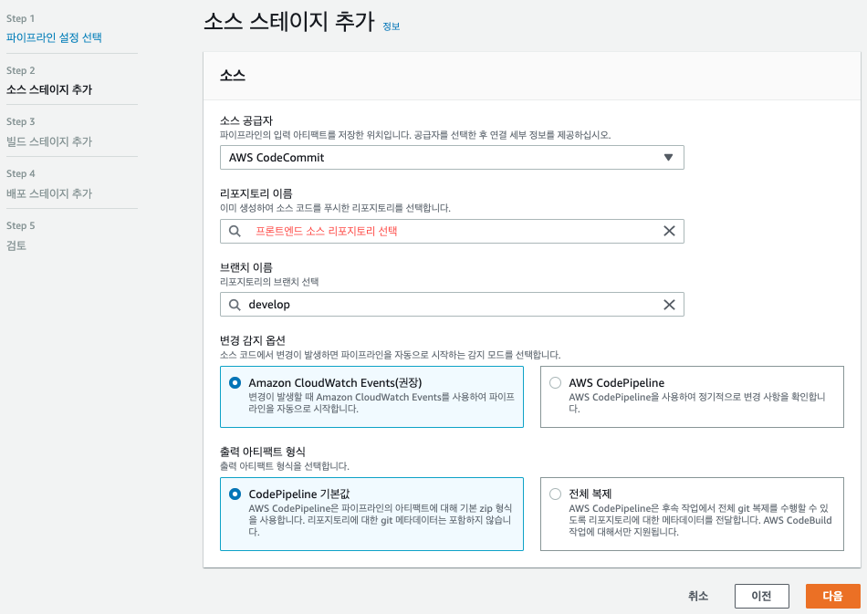 (1) Code Pipeline 생성