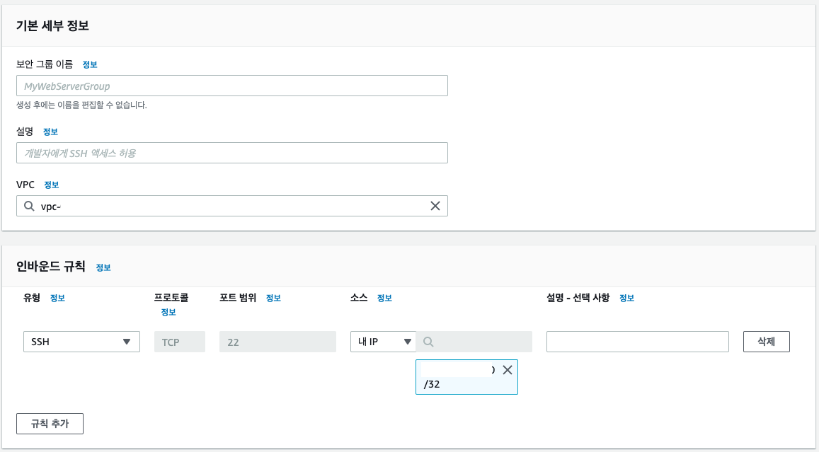 1. Public Subnet에 생성할 EC2의 보안 그룹 생성