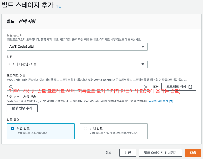 - printf '[{"name":"ECR_리포지토리명","imageUri":"%s"}]' $REPOSITORY_URI:$IMAGE_TAG > imagedefinitions.json