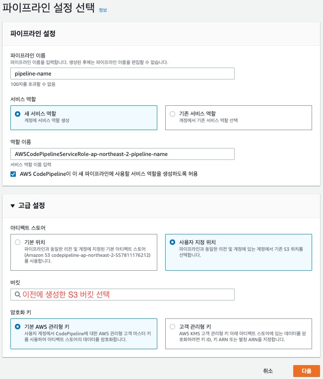 2. CodePipeline 생성