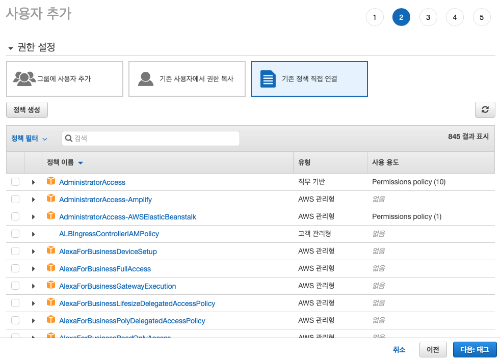 아래 과정을 통해 유저를 생성합니다. 추후에 다양한 리소스들을 생성해야되기 때문에 그에 알맞는 권한을 주어야 합니다.