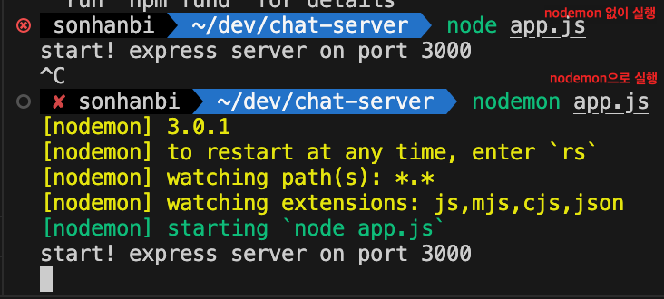 서버의 변경이 있을 때마다 재시동하는 것이 불편하기 때문에 nodemon을 설치해줍니다.