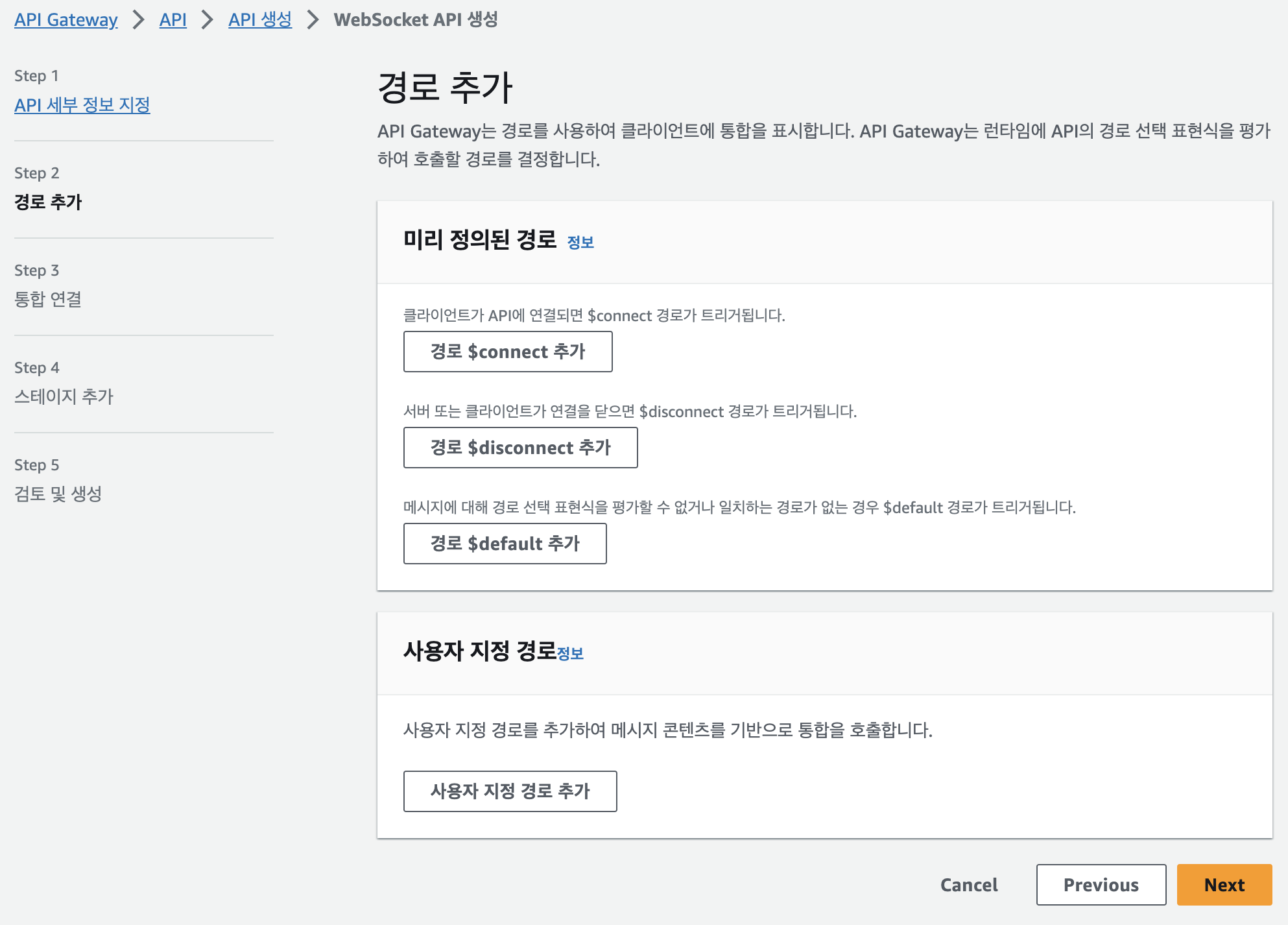 이렇게 하고 나면 WebSocket 용 API Gateway가 생성됩니다.