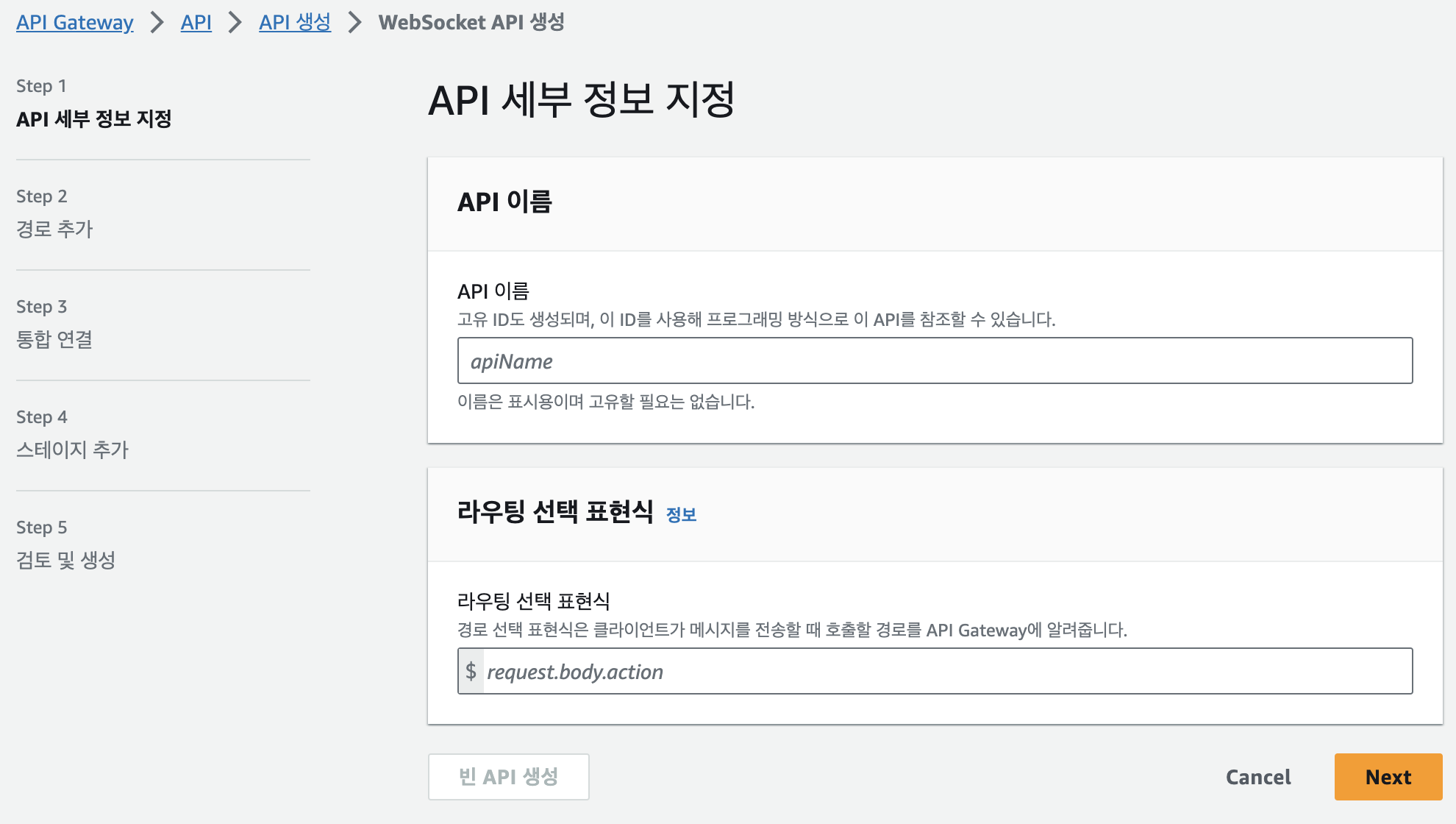 1. WebSocket Api 를 생성합니다.
