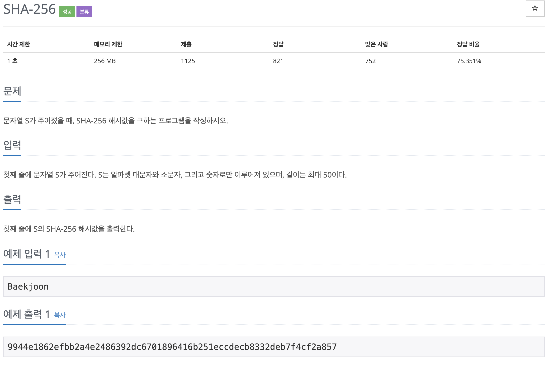 문제는 위와 같으며 이미 만들어진 SHA-256 라이브러리를 통해 구현하였습니다.
