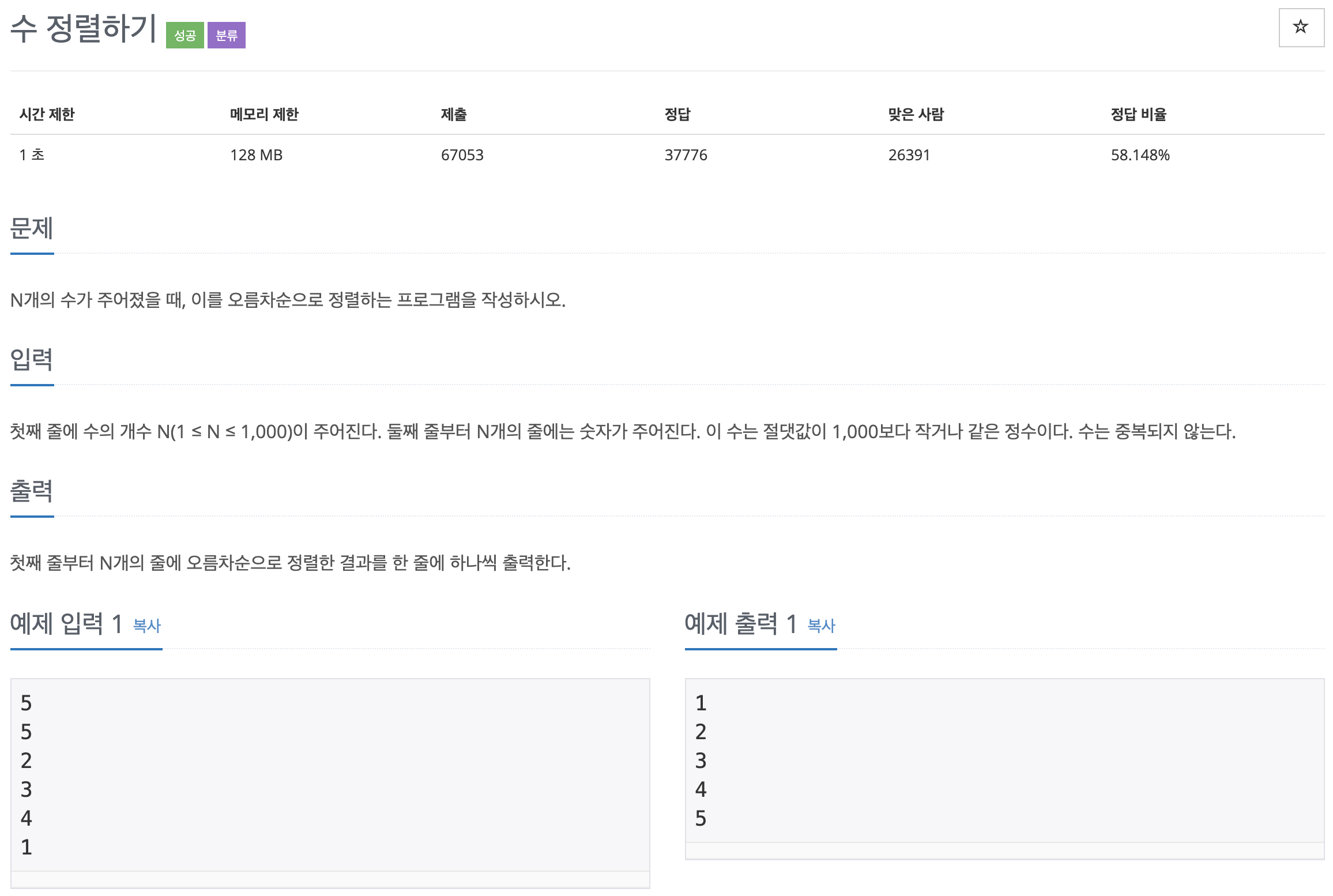 문제는 위와 같으며 기본적으로 제공되는 sort() 를 사용하여 문제를 해결하였습니다.